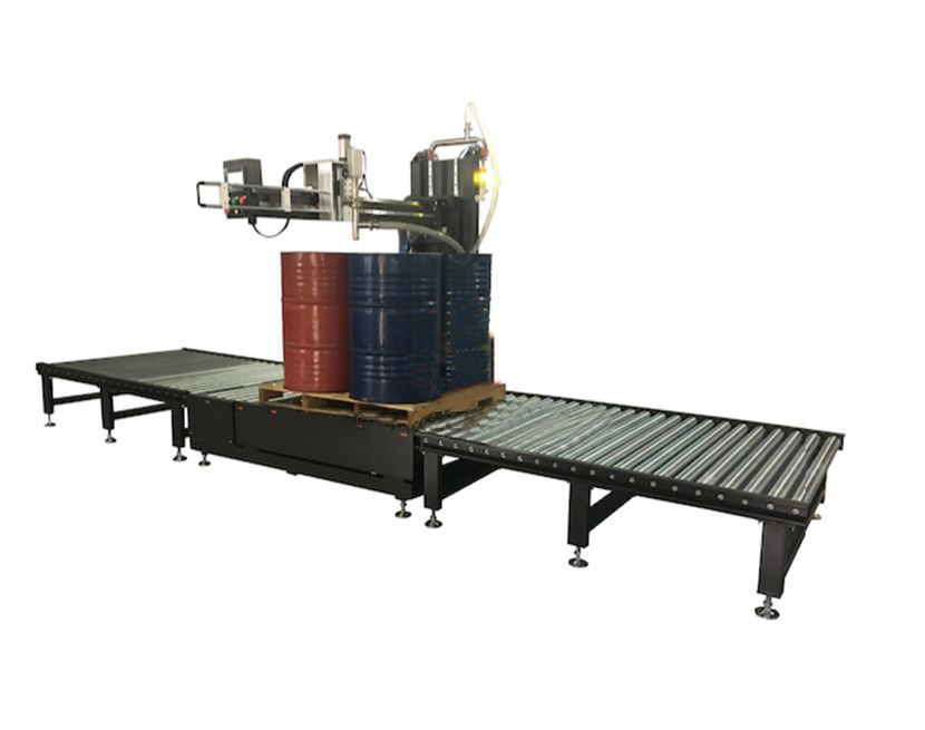 應用案例 YCS-GZ型高灌噸位稱重式灌裝機,原理是由稱重傳感器平臺在PLC控制下設定計量.是高精度,高技術產品.是集機、電、儀一體化的新型機種,它改變了傳統流量計式灌裝機定量精度及無法對較粘液體的計量缺陷.是文明生產和國家明令規定淘汰杠桿秤后,融稱重與灌裝一體化的理想設備.灌裝時先去除皮重,物料在注入容器時先大量快速灌裝后再慢速小劑量修正計量.操作者只需要將容器放入平臺,桶口對準灌裝咀,此時程序啟動,灌裝咀下降,打開灌裝閥進料,當達到設定量是自動停止灌裝,灌裝咀上升,完成灌裝過程。稱重灌裝機適用于各種有粘、無粘、有一定腐蝕性和無腐蝕性、無泡沫的液體稱重定量灌裝。功能特點1.產品設置-儲存多達10種不同產品的重量設定值及相關灌裝叁數。2.人機界面-在稱重終端上可方便地進行秤的標定;在觸摸屏上可快速地進行灌裝叁數的設置。3.灌裝方式- 凈重灌裝,自動去皮,按凈重灌裝。4.稱重精度-采用高性能稱重模塊+PLC +稱重傳感器,保證灌裝精度的控制。5.落差補正-每桶灌裝後自動修正提前量,使下一桶的灌裝更接近目標值。6.允差檢查-檢查滿桶允差,能有效地防止物料的外溢。7.數據統計-包含重量累計、次數累計。8.多段灌裝-可分為兩段(快/慢)式灌裝,大幅度提高灌裝精度。9.節流裝置-有效地防止了在灌裝低粘度產品時因泵送初始壓力大而造成的飛濺現象。10.滴漏防護-采用真空回抽防滴漏裝置[根據實際物料,若高黏度物料,無需此功能]11.灌裝模式-灌裝模式設計 桶口灌裝。12.輸送方式—空桶動力輸送噸桶或托盤送入稱重段,稱重段無動力滾筒,灌裝完畢滿桶動力滾筒輸出。13.升降結構—灌裝立柱采用手搖式升降,方便調整灌裝頭整體高度。14.聯鎖安全-各種過程聯鎖,保證安全操作。15.操作簡便-灌裝系統易于學習和操作。16.靈活設計-依照現場原料特性及容器尺寸提供各種形式設備及選配件,結構緊湊。17.密封件采用硅橡膠(耐磨損、耐高溫、耐酸堿、耐腐蝕),氟橡膠(耐磨損、耐強酸堿、強腐蝕) 【根據實際物料屬性溫配合適的密封件】。型號YCS/1000L灌裝范圍200-2000kg灌裝速度40-60桶/小時(測試物料為水,目標重量200kg/桶)10-15桶/小時(測試物料為水,目標重量1000kg/桶)灌裝精度 ±0.1%(參考重量200kg)進料壓力 0.3~0.35MPa工作壓力 0.4~0.6MPa耗氣量 0.5Mpa功率電源 2.5KW, 380V平臺尺寸(mm) 2000x1500產品尺寸(mm)2000*2000*2350滾筒面距地面高度500mm重量2000KG上海廣志自動化設備是專業生產200升4桶灌裝機的廠家,歡迎廣大客戶前來咨詢,電話021-60518382 上海廣志自動化設備是專業生產200升4桶灌裝機的廠家,歡迎廣大客戶前來咨詢,電話021-60518382 上海廣志自動化設備是專業生產200升4桶灌裝機的廠家,歡迎廣大客戶前來咨詢,電話021-60518382