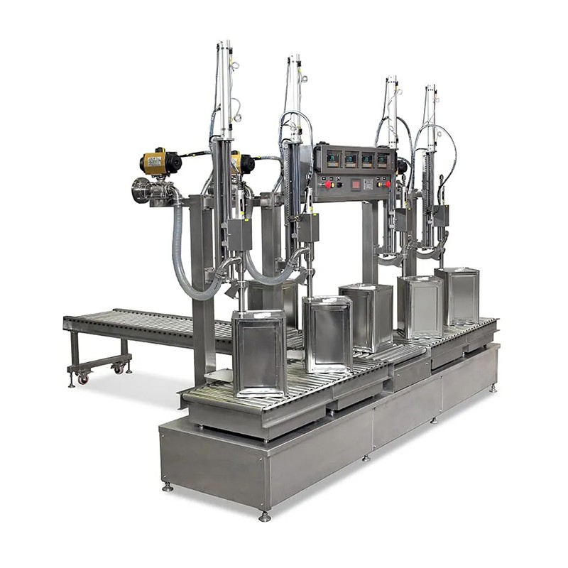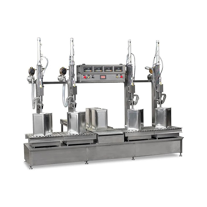 自動灌裝機主要針對化工廠生產過程中中間環節進行灌裝,主要灌裝化工桶,產品灌裝頭部分采用316不銹鋼材質,不適用腐蝕類化工料,針對液體進行灌裝。
