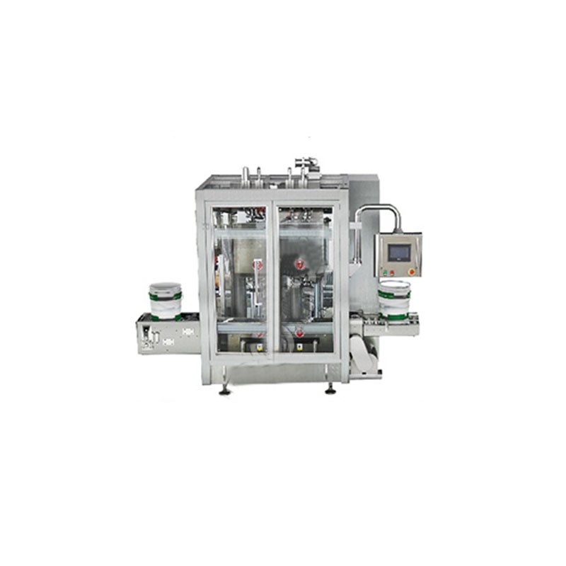 ■ 設備自動將空桶輸送到灌裝區進行灌裝,灌裝結束后,動力滾筒自動將滿桶輸送到上蓋區上蓋壓蓋,后端可配置自動貼標機,自動碼垛機,前端空桶區亦可配置自動分桶機
