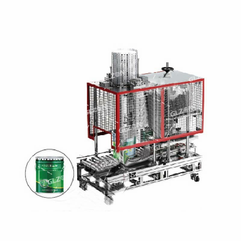 工作流程:啟動-顯示屏上設置要灌裝的重量,然后按啟動鍵,把桶放在灌裝區,自動感應開始灌裝,灌裝過程實現快加,慢加,確保灌裝的度,到達設置的重量自動停止,然后推開放上蓋子,推到壓蓋區,自動感應壓蓋,壓蓋完成出產品。