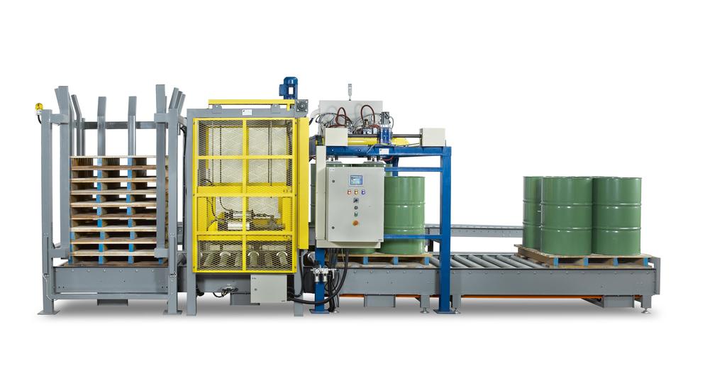 Drum palletizerThis machine is specially designed for the back stacking of the middle bucket assembly line.Thesystem is light in body,small in floor space and powerful in function,which can meet the u