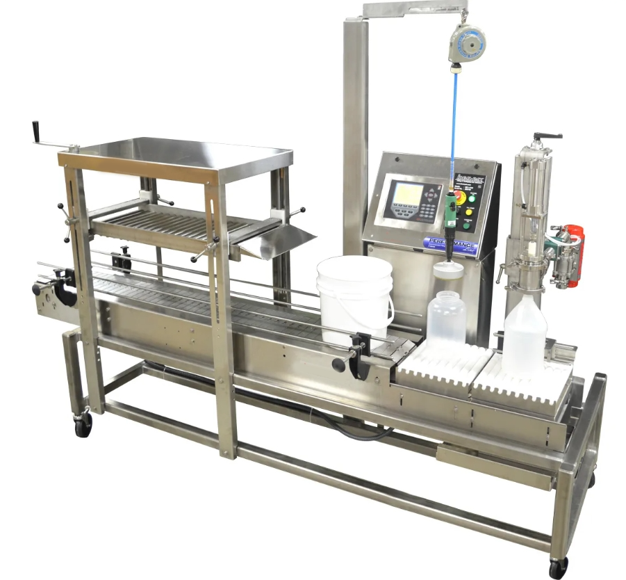 The economical Semi-Automatic Liquid Filling solution. Electronic net weight filling, Top, Bottom or Inside Fill machine configurations, pneumatic controls, Rice Lake touch pad weight control, single or double filling heads and a variety of closing options handle a wide variety of applications and container types.
