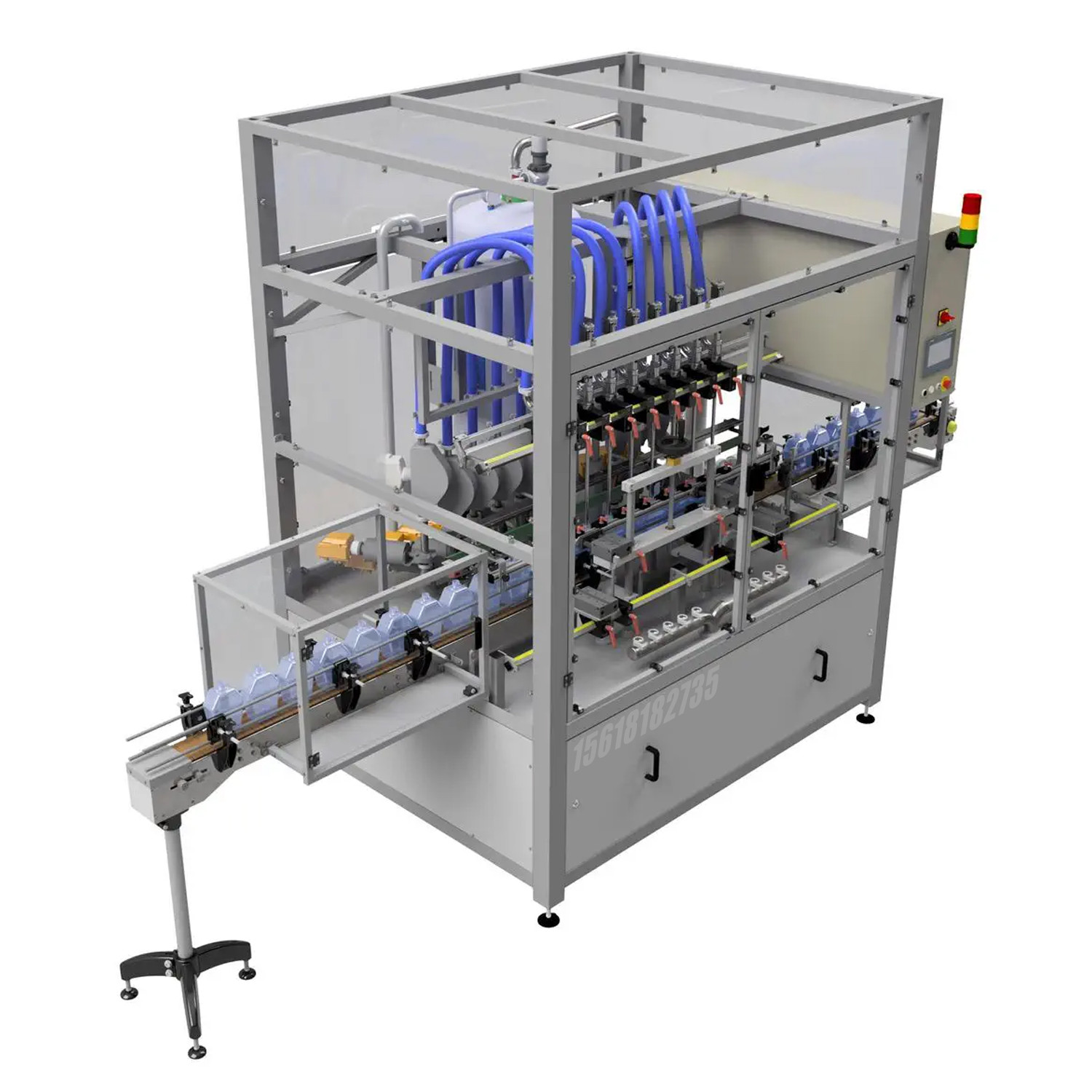 ?★整機采用懸掛式卡瓶口輸送機結構,從而使整線輸送瓶子更為可靠。不同瓶型只需調整輸送帶高度及少量的變更附件,更換瓶型更快捷、省力;