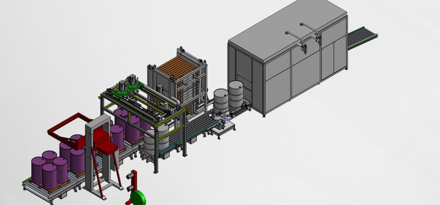 200升自動灌裝線 開蓋 灌裝 旋蓋 碼垛生產線