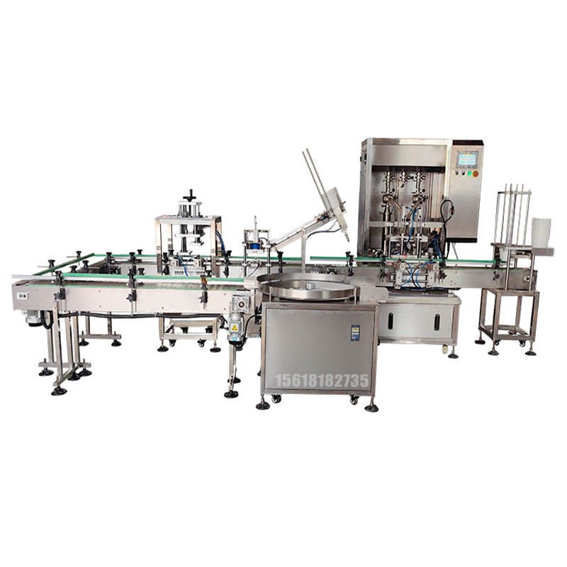 該產品是我公司精心設計的更新款1-5L雙頭乳膠自動灌裝機,整線從自動落桶一自動灌裝一自動下蓋落蓋一自動壓蓋一收桶平臺,可配置貼標、打碼、檢測機等。本產品是采用PLC和 觸摸屏目動化控制,活塞式灌裝具有計量準確、結構美觀、運行平穩、噪音低、調節范圍大,灌裝速度快等
