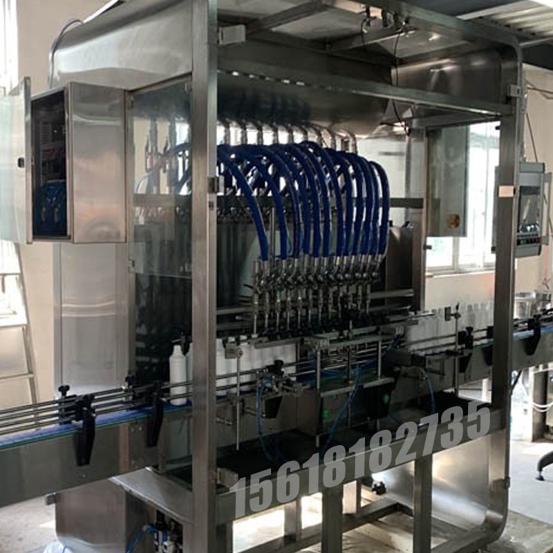 活塞式灌裝機設計選用直線式分組進瓶、出瓶的方式、使灌裝功能擴展,各種形狀的容器、都能在本設備有效灌裝,選用進口的氣體灌裝閥,確保灌裝過程無滴漏、無垂涎,強大的PLC軟件支持,可實現理想的灌裝作業,人機界面,所有操作均在觸摸式彩屏上完成。 灌裝采用固定流道參數,控制灌裝時間來實現不同計量的灌裝。氣動閥灌裝的精確時間可設定到0.01秒,能使計量精確度控制在±1%誤差范圍,減少不必要的物料損耗,提高用戶經濟效益。每個灌裝頭的計量可以進行單獨調整,以實現灌裝計量的一致。本機設定了進瓶技術程序、無瓶、計數不到位不灌裝,只有當計數器記錄到的瓶數與設定的灌裝瓶數一致時才開始灌裝。灌裝量的多少,可以進行初調到所需灌裝量時,再進行微調,即可得到理想的灌裝計量精度。 注:灌裝范圍和速度可依據用戶需求來設計不同的灌裝頭數. 技術參數 灌裝范圍 :100~1000ml(可定做) 灌裝速度 :16-24瓶/分鐘(指100~500毫升范圍) 計量精確度:±1% 額定功率:0.8kw 電壓:220v 工作氣壓 :6~7公斤/平方厘米 耗氣量:0.5-0.7mpa 機器凈重:550kg上海廣志自動化設備是專業生產化工灌裝機的廠家,歡迎廣大客戶前來咨詢,電話021-60518382 上海廣志自動化設備是專業生產化工灌裝機的廠家,歡迎廣大客戶前來咨詢,電話021-60518382 上海廣志自動化設備是專業生產化工灌裝機的廠家,歡迎廣大客戶前來咨詢,電話021-60518382