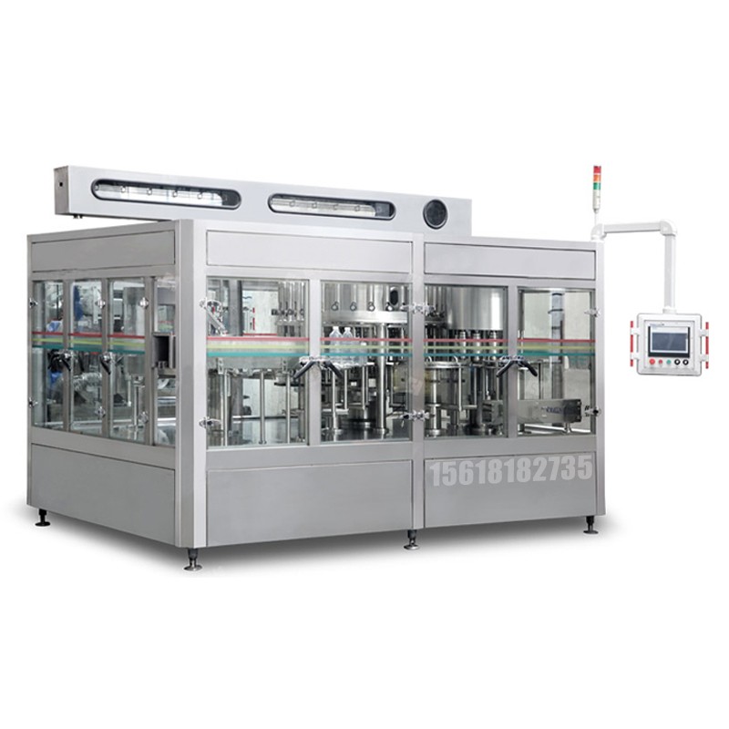 三合一乳飲品生產線集洗瓶-灌裝-理蓋上蓋-封口為一體的自動灌裝機組。乳飲品灌裝機適用于PP或PET瓶乳品果汁以及米露等產品的灌裝封口。