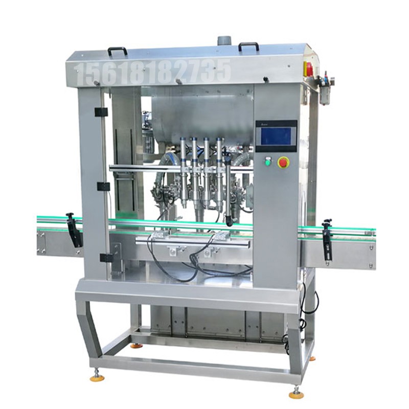大顆粒醬料灌裝專利技術,解決了醬料、大顆粒醬等產品灌裝過程容易出現油料分離現象,該芝麻醬灌裝生產線具有4個同步灌裝頭,同時工作,外觀美觀大方,全不銹鋼,易清潔,采用韓國光眼裝置,LG韓國PLC、法國電器元件,可連續自動運行灌裝,無瓶不灌裝,配置防滴漏裝置等。