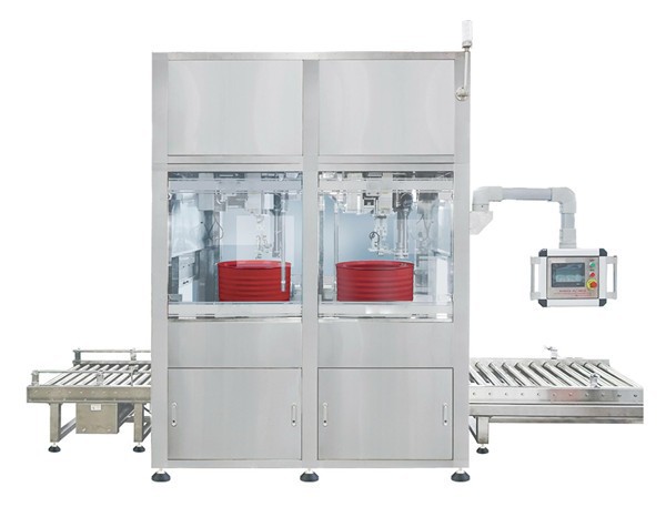 200kg桶自動開蓋、灌裝、旋蓋一體機。自動進桶、分桶、桶口精確定位。采用頂尖開蓋、旋蓋技術,實現自動開蓋、自動灌裝、自動旋蓋、旋蓋檢測功能全流程無人化。可選自動充氮、防水蓋自動密封等功能。適用于200kg鐵桶、塑料桶的自動化灌裝。專業級的灌裝頭,杜絕滴漏,灌裝穩定性好,旋蓋合格率高,減少損耗,節約成本,安全環保。