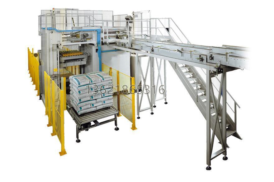 高位碼垛機可應用于高位進袋的工況,其設計可滿足現代包裝產線的中高產能需求。通過將整層放置到托盤上,與此同時托盤逐層降低,有效提升了高位碼垛的產能。