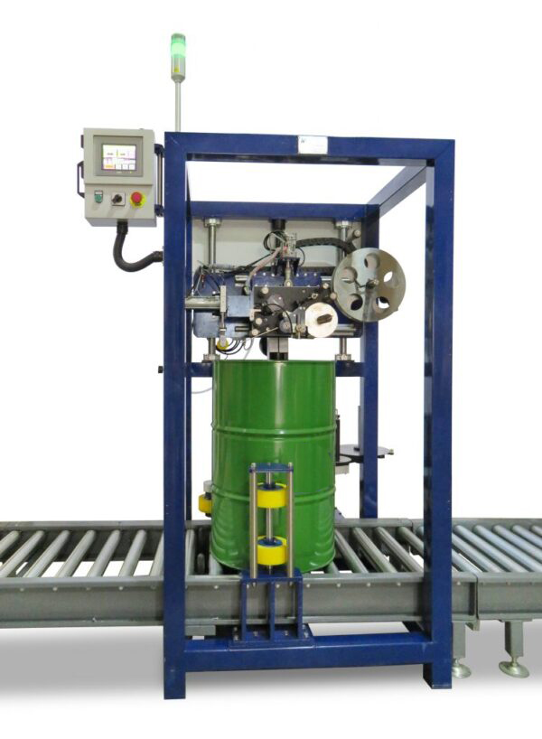 15–50 drums/minute; handles ≤300kg drums with paper, PVC, polyester, or RFID labels.